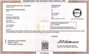 This eye OFA certifies that Desiree is free of inherited eye disease. We have an upcoming appointment in May for this certificate to be renewed!